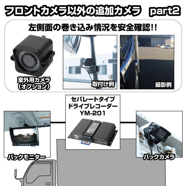 後続車とのトラブル(あおり運転)回避に。駐車・停車中の荷降ろし作業の録画に。
