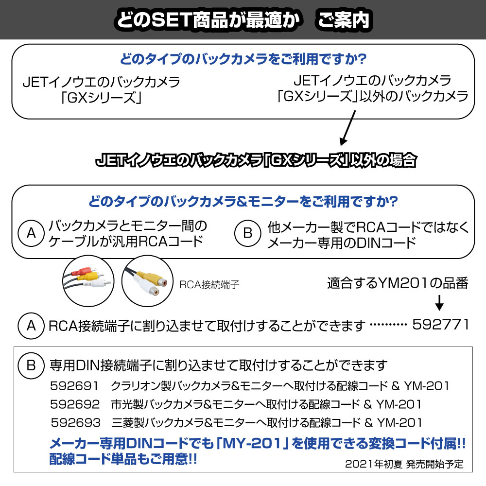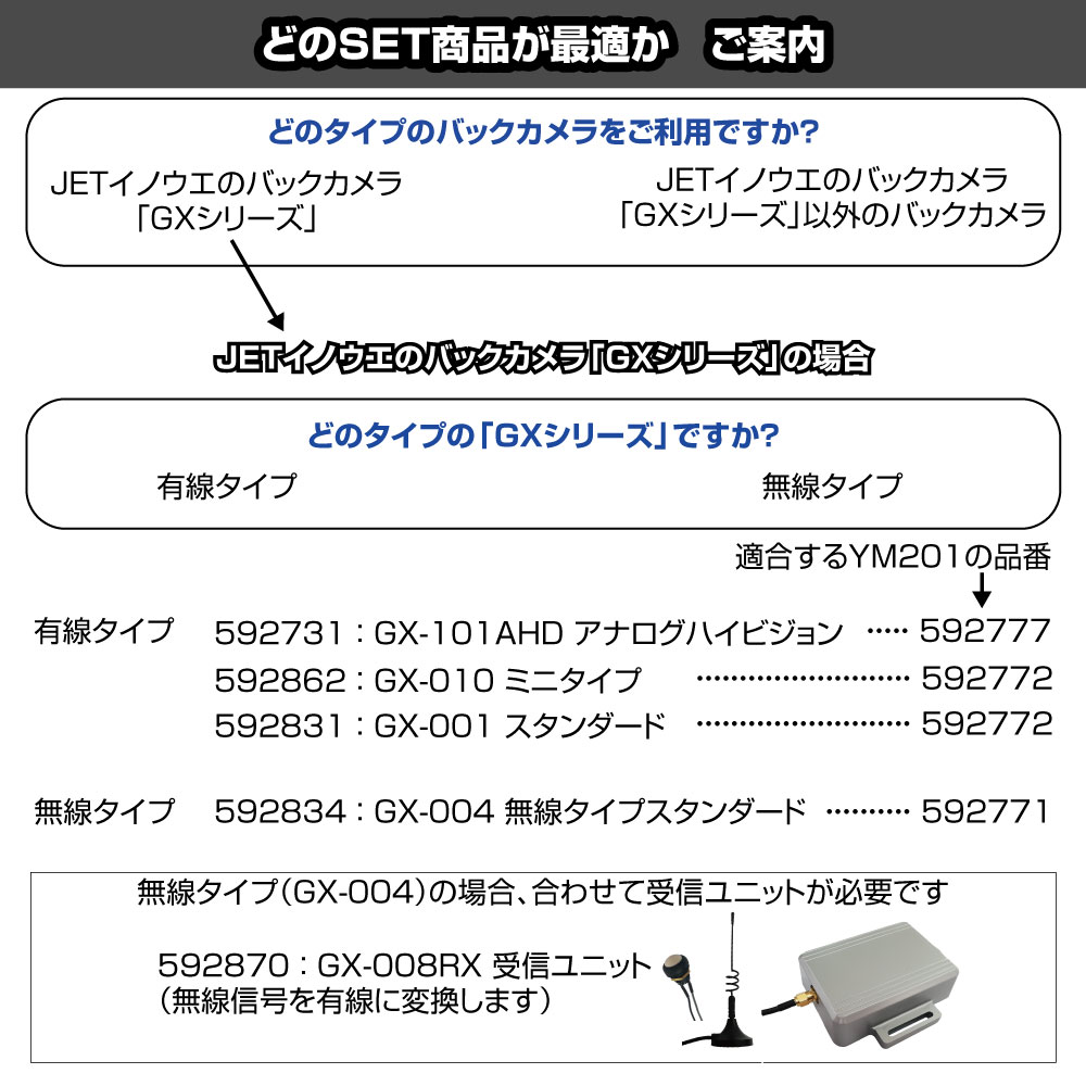 JETイノウエ製バックカメラ「GXシリーズ」に簡単に接続できるセットです。