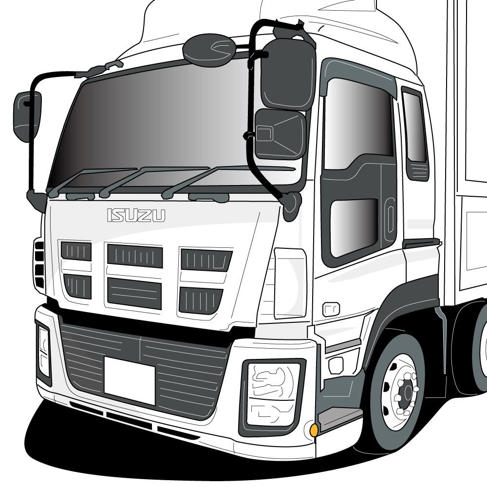 PRODUCT SPEC 製品仕様適合車種ギガ(H6.12~H27.10)、 フォワード320(H6.2~H19.6)材質(サイドパネル)スチール/クロームメッキ材質(ベンチレーター)樹脂/クロームメッキカスタム車には取付不可