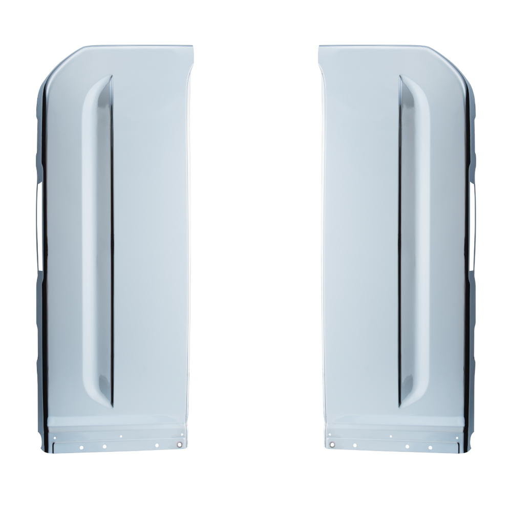 PRODUCT SPEC 製品仕様 適合車種ファイブスターギガ(H27.11~)、 ’23フォワード/ ’07フォワード(H19.7~)材質スチール/クロームメッキハイルーフ車の場合、雨どい位置には個体差があるので雨どいとサイドパネルの間に隙間が生じる場合があります。ファイブスターギガ(R5.4~ )のトラクターヘッド車(UDのOEM車)は不可となります。UDクオン用をご確認ください。