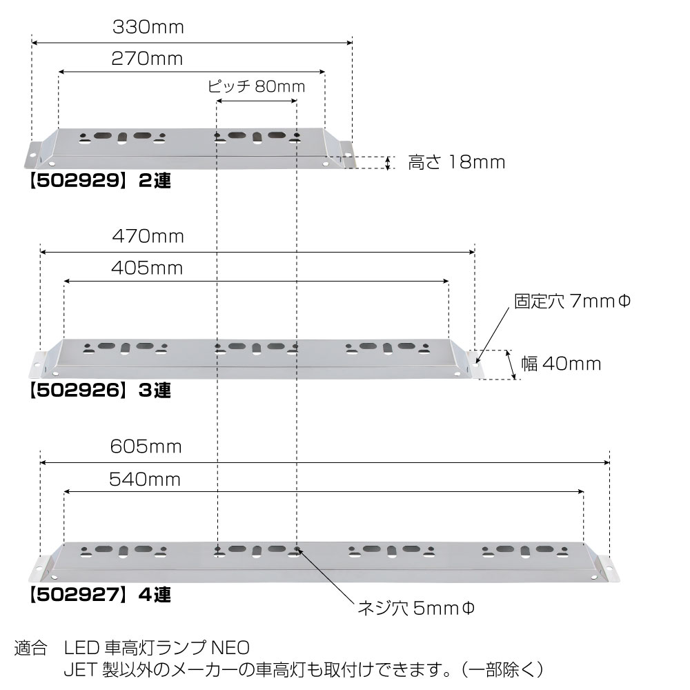 JET「LED車高灯ランプNEO」に最適なマーカーランプ取付けステー。ピッチが80mmサイズのマーカーのご利用が可能です。