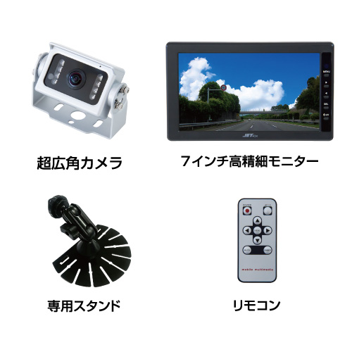 | セット内容 | GX-007超広角カメラ(592842) WDMK-007S1 7インチモニター(592841系) モニタースタンド モニター用リモコン バックセンサー(592711/592713/592712/592714) |