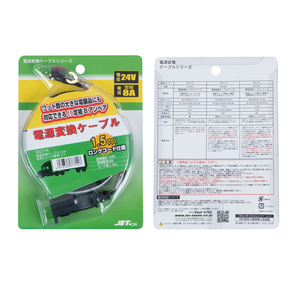 商品名 | 電源変換コード1.5m 低背ヒューズ → 平型コンセント |