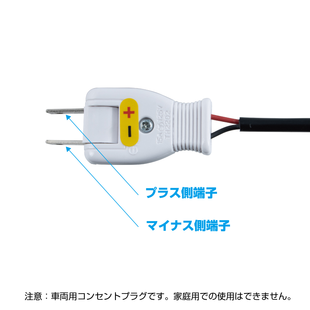 • 本製品を車両側DCコンセントに差し込む際には極性に充分ご注意ください。