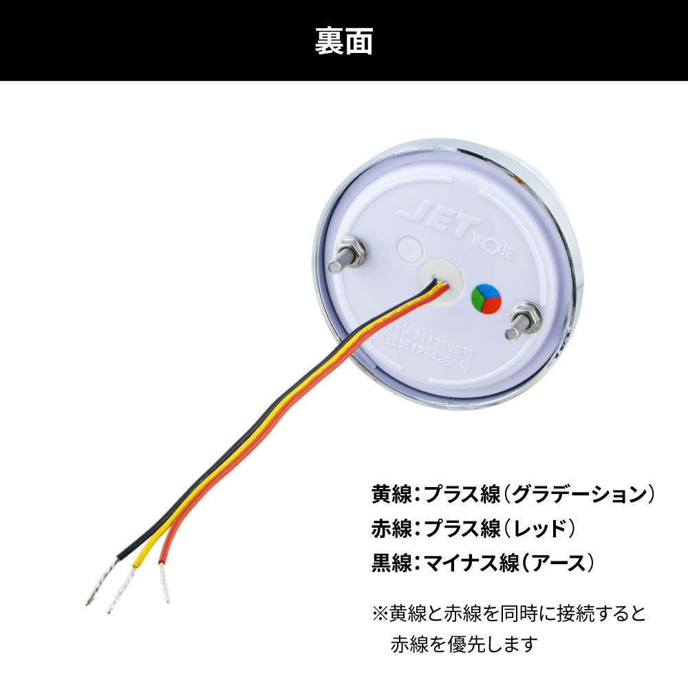 ON/OFF/ONのスイッチで切り替えて使用するだけではなく、双方に通電させるとレッド点灯を優先させることから、グラデーションはスモールランプ、レッドはストップランプにそれぞれ接続すると、普段はグラデーションさせてブレーキをかけるとレッドに切り替わるような使用方法も可能です。