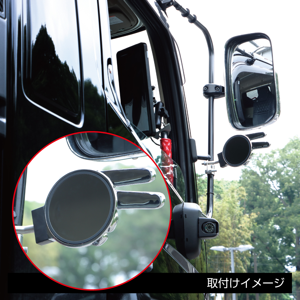 ジェットイノウエがバイク用品を得意としていた井上自動車用品製作所の頃、爆発的にヒットしたバイク用ミラーの「じゃんけんミラー」。そのアクセサリー要素の強いデザインを、そのままトラック用補助ミラーとして復活!