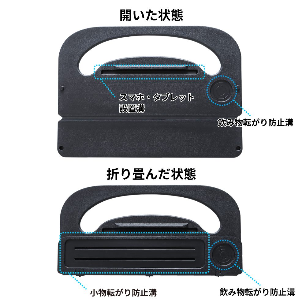 ドリンクが置ける箇所と、小物などを置いても転がりなど防げる溝を設け、更にタブレットやスマホを挿して縦置きができる溝を設けました。