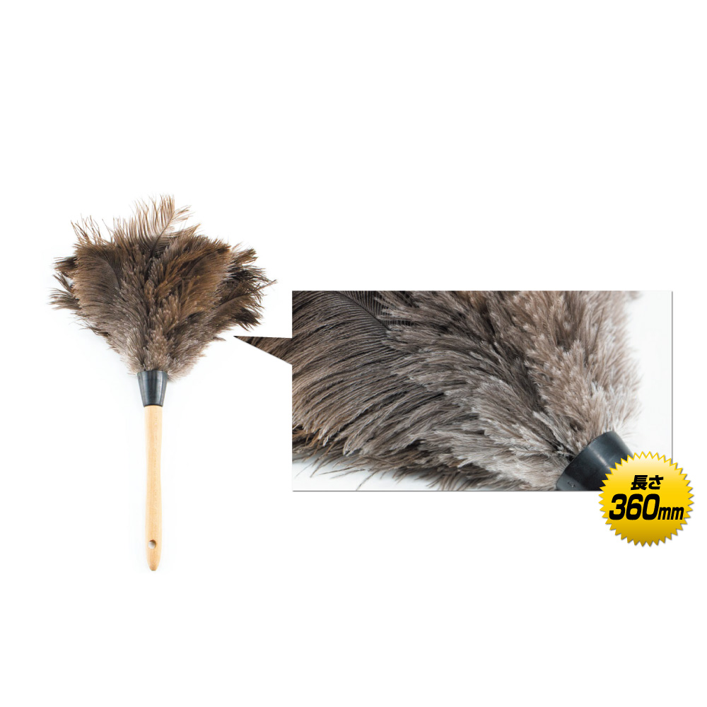 PRODUCT FEATURES 製品の特徴ダチョウの羽は繊細でやわらかく、静電気を帯びにくいので埃を簡単に取り除くことができ、埃が再び吸着するのを防いでくれます。また羽に埃も付着しにくいため、商品のお手入れが簡単です。