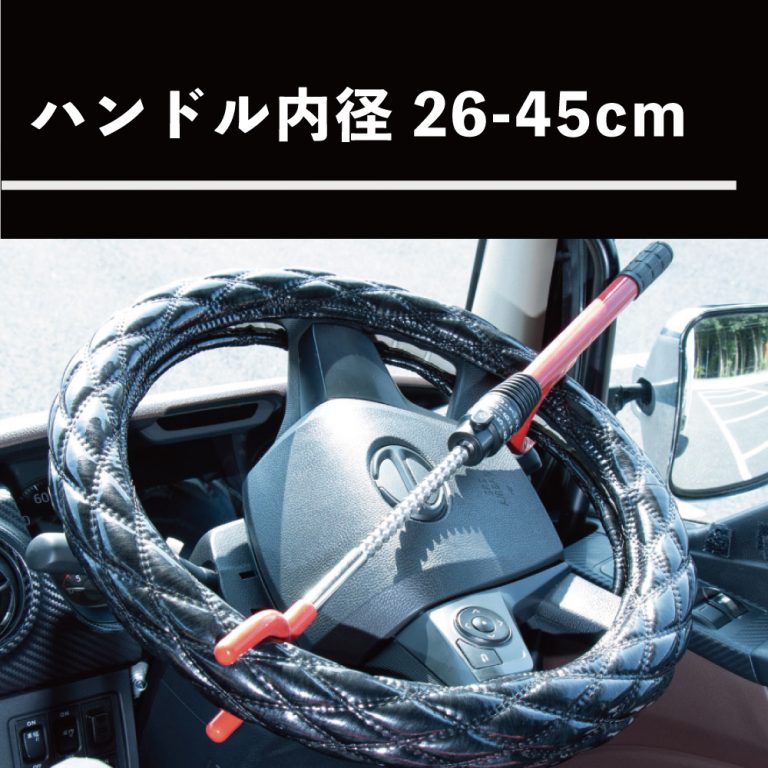 ハンドルカバー付き対応。ハンドル内径は最小26cm~最大45cmですので、軽自動車から大型トラックまでご活用いただけます。